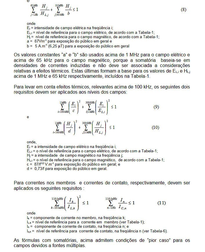 Radiofrequência – CEMRF, adotados pela ANATEL.